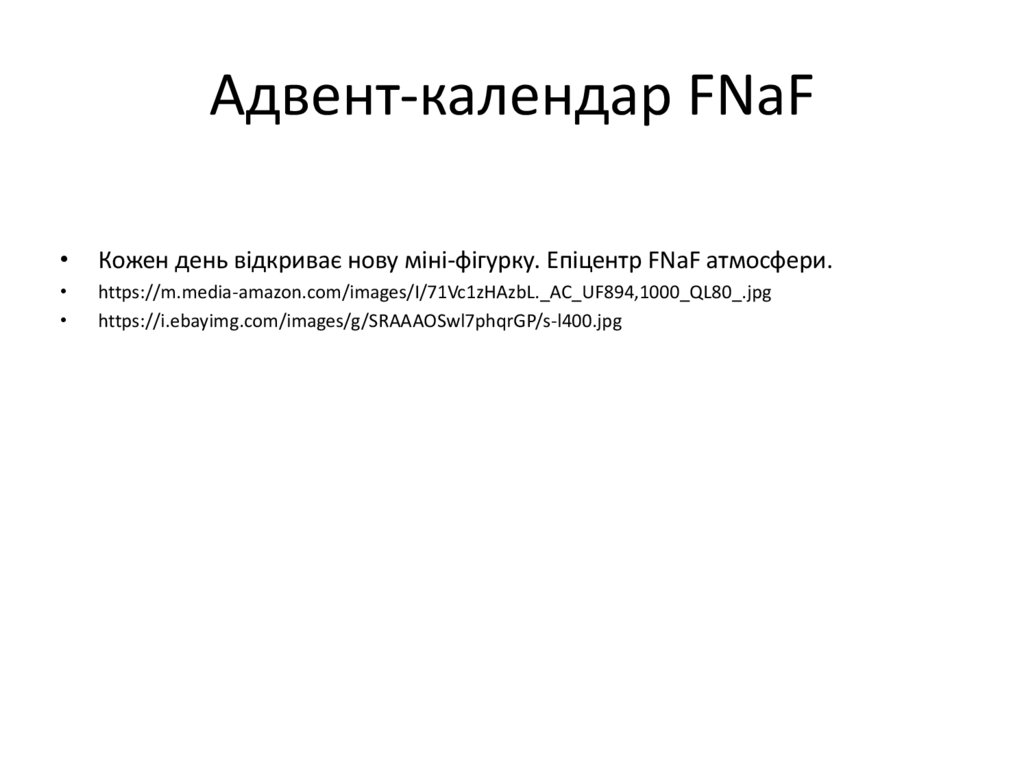 Адвент-календар FNaFКожен день відкриває нову міні-фігурку. Епіцентр FNaF атмосфери.