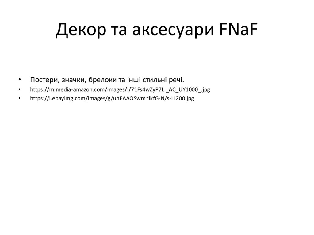 Декор та аксесуари FNaFПостери, значки, брелоки та інші стильні речі.