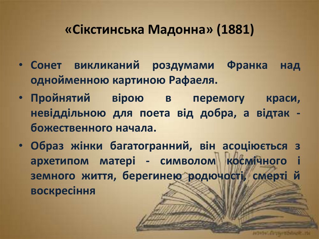 «Сікстинська Мадонна» (1881)• Сонет викликаний роздумами Франка над