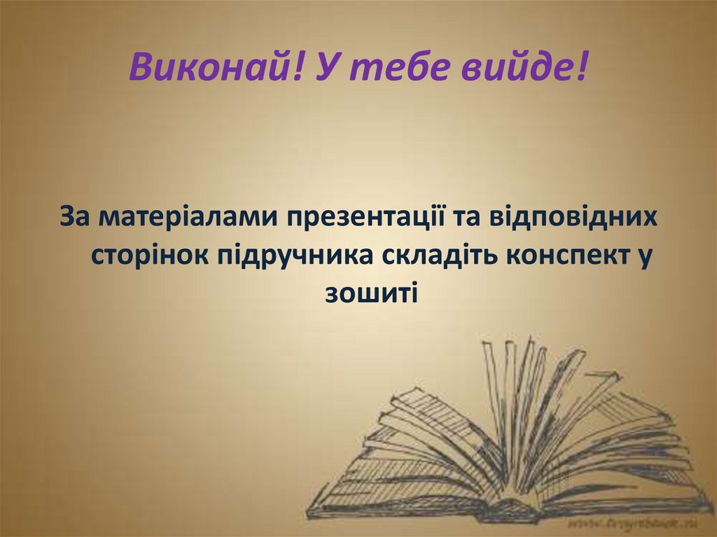 За матеріалами презентації та відповіднихсторінок підручника складіть конспект у