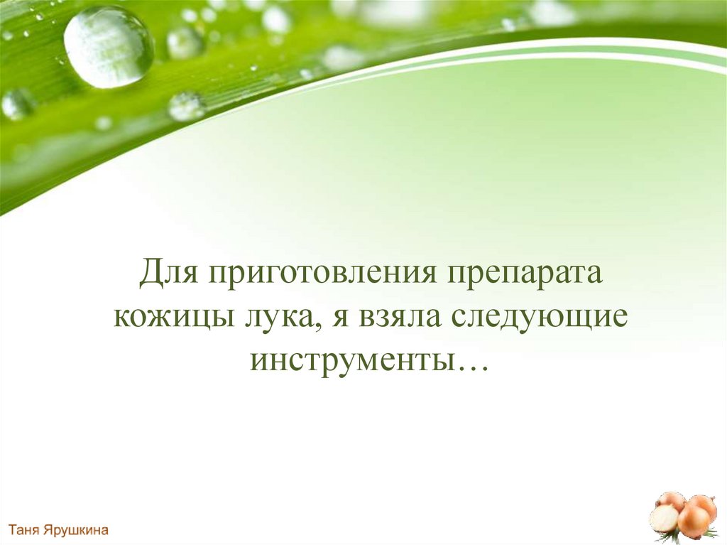 14. Для приготовления препарата кожицы лука, я взяла следующие инструменты…