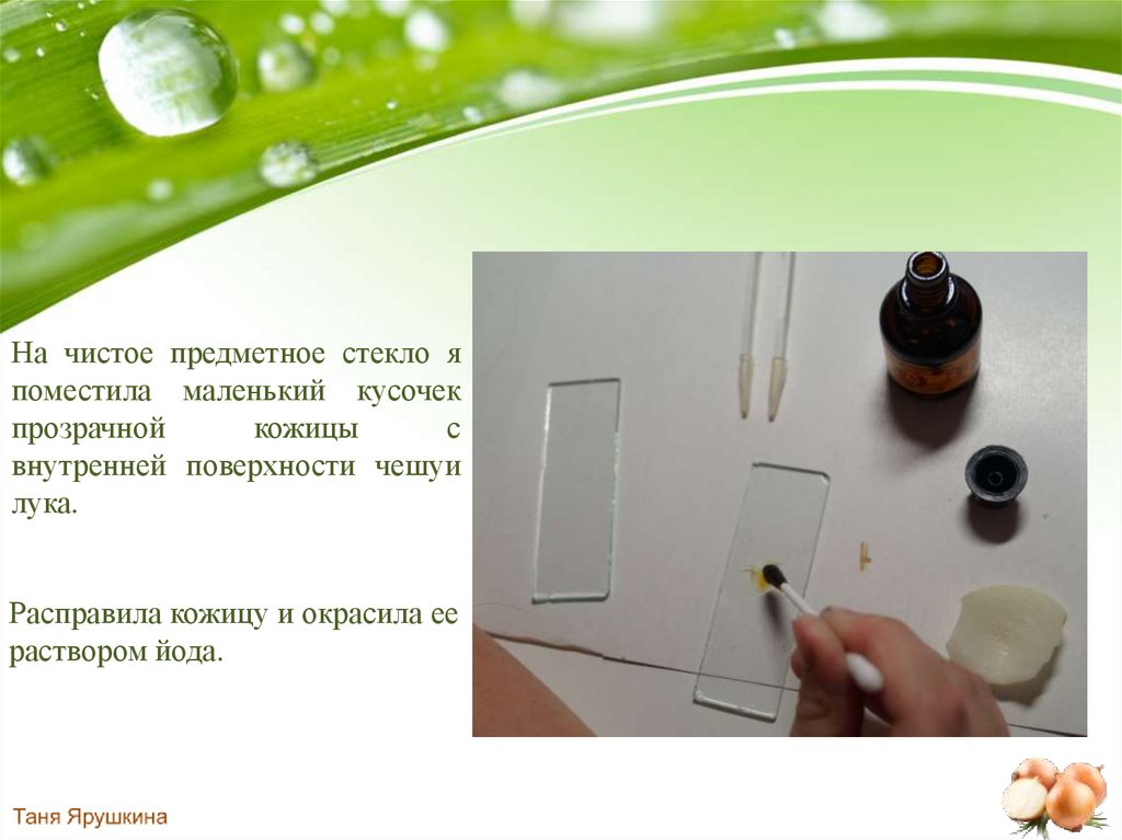 Расправила кожицу и окрасила еераствором йода.
