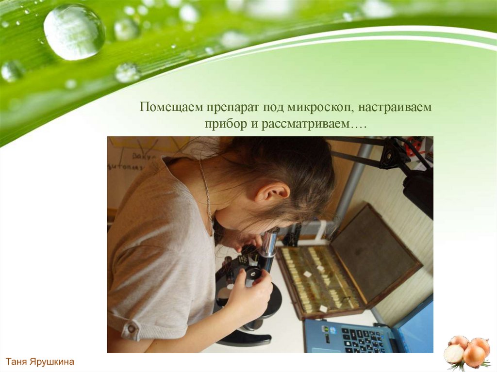 22. Помещаем препарат под микроскоп, настраиваем прибор и рассматриваем….
