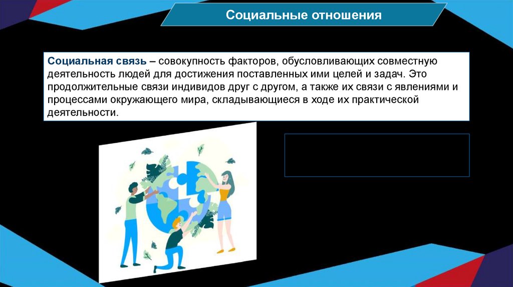 Социальные отношенияСоциальная связь – совокупность факторов, обусловливающих совместную