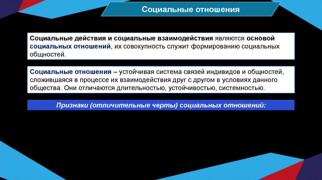 Социальные отношенияСоциальные действия и социальные взаимодействия являются основой