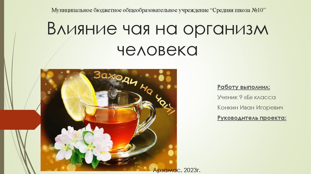 Муниципальное бюджетное общеобразовательное учреждение “Средняя школа №10”Влияние чая на организм