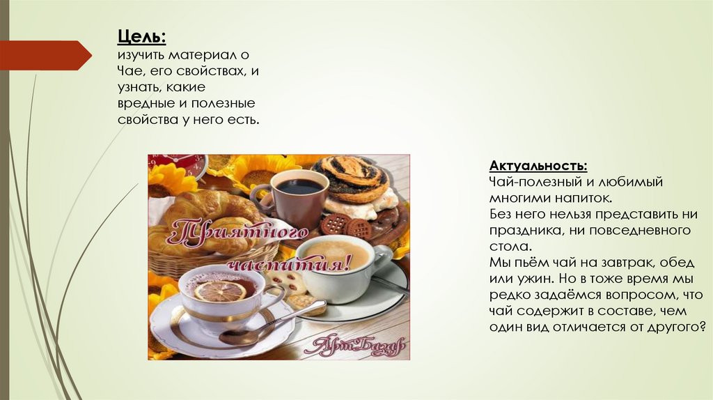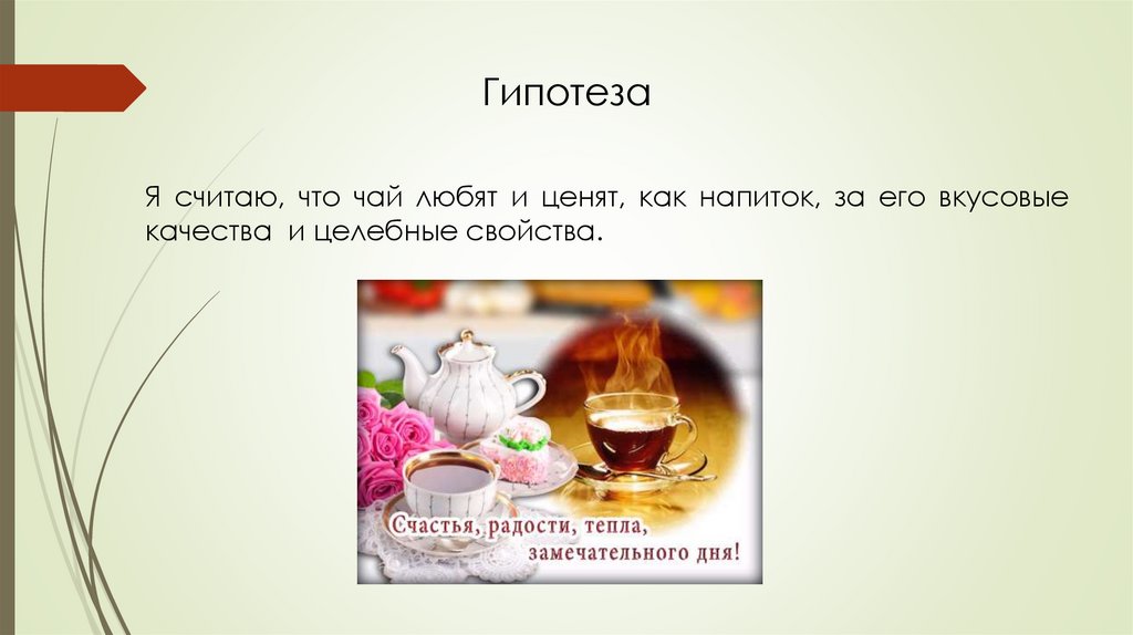 ГипотезаЯ считаю, что чай любят и ценят, как напиток, за его вкусовые