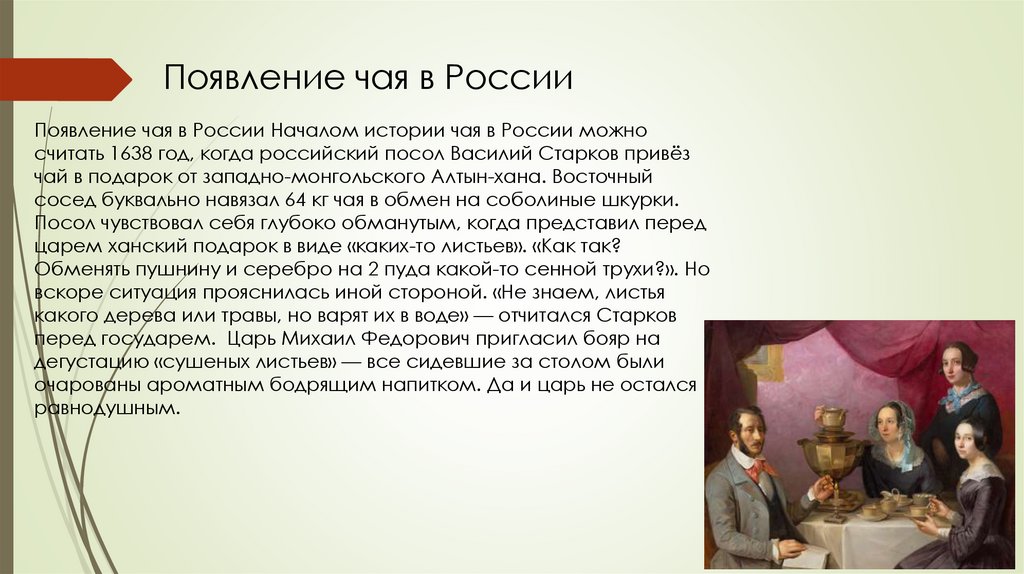 Появление чая в РоссииПоявление чая в России Началом истории чая в России можно