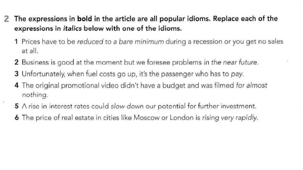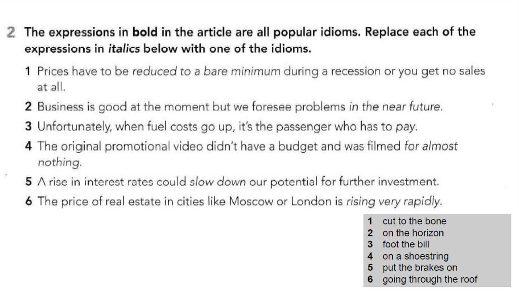 VOCABULARY: IDIOMS AND METAPHORSComplete the sentences with words from the box.1Write