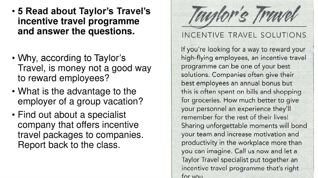 • 5 Read about Taylor’s Travel’sincentive travel programme