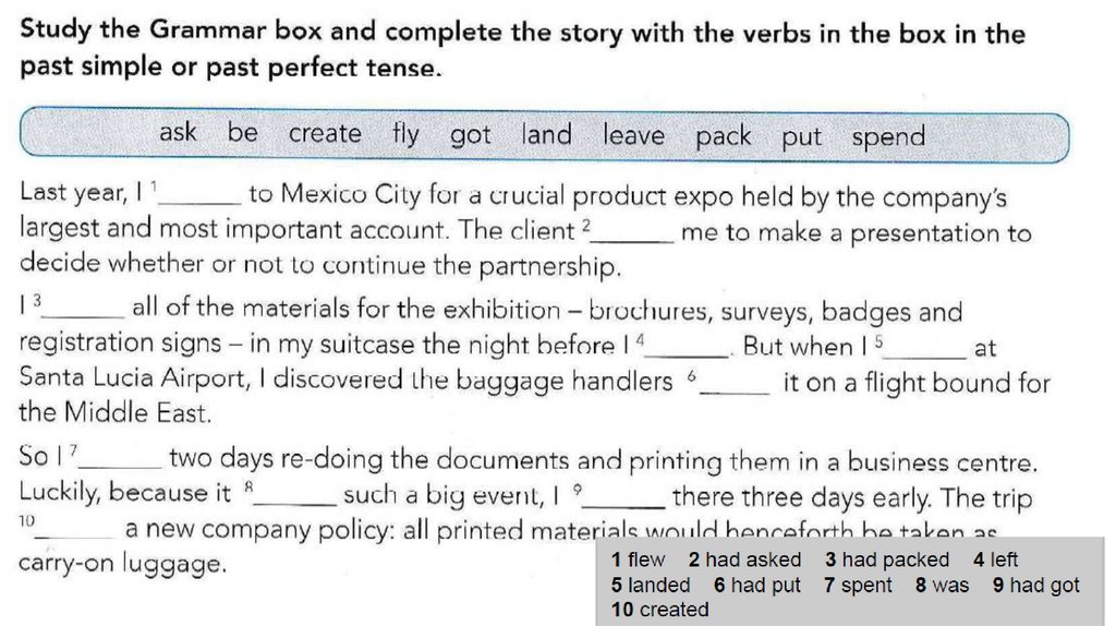 10. grammar: past perfect Match the sentence endings (a–l) to the beginnings (1–12).