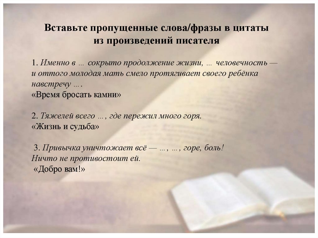 Вставьте пропущенные слова/фразы в цитатыиз произведений писателя