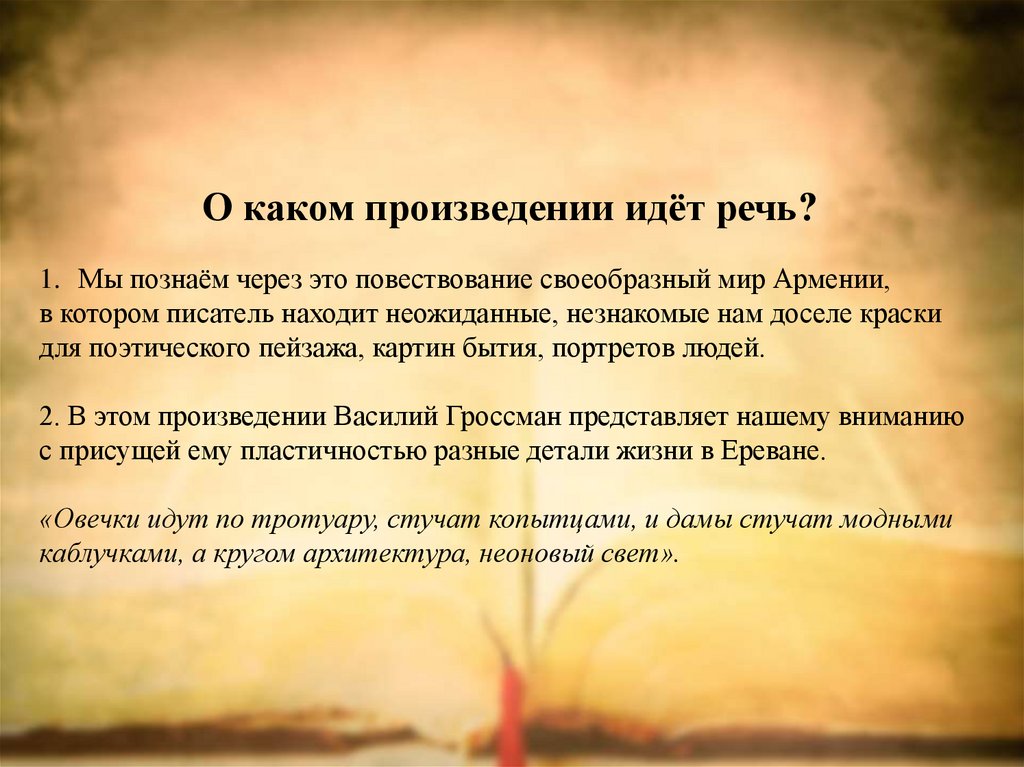 О каком произведении идёт речь?1. Мы познаём через это повествование своеобразный мир Армении,
