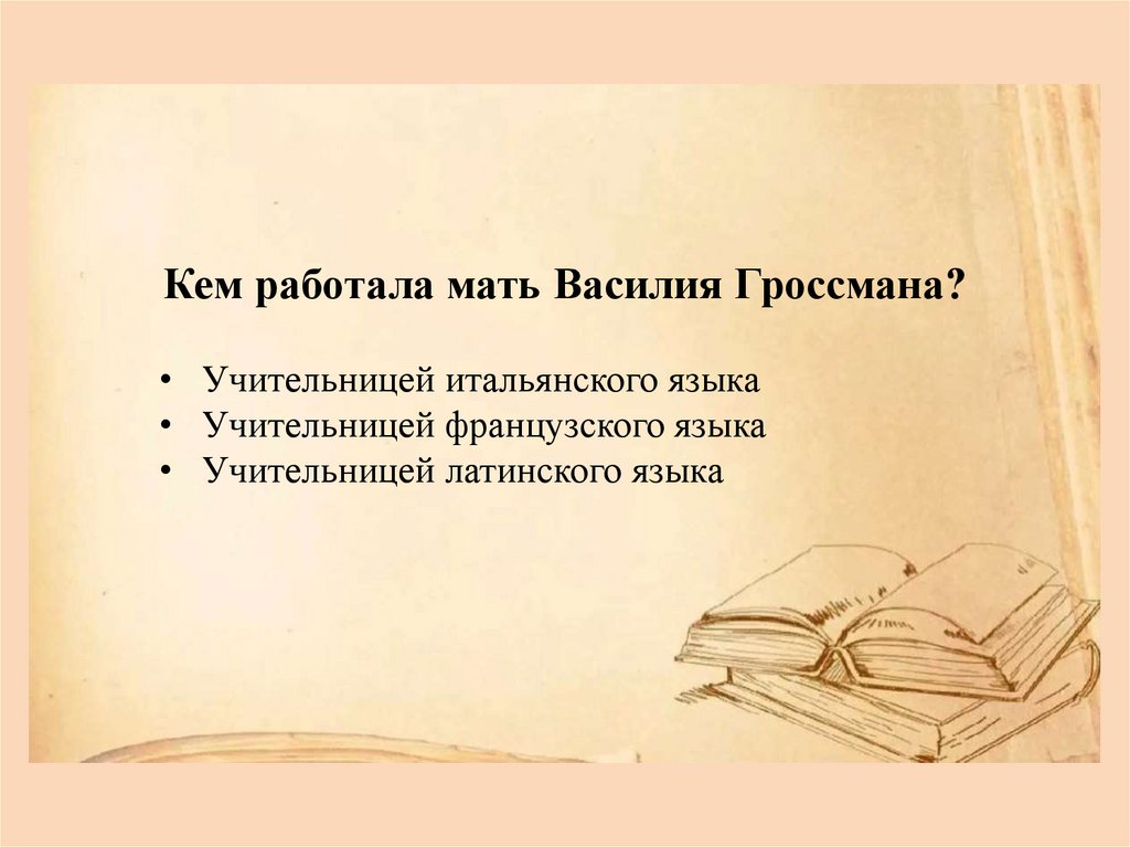 Кем работала мать Василия Гроссмана?• Учительницей итальянского языка