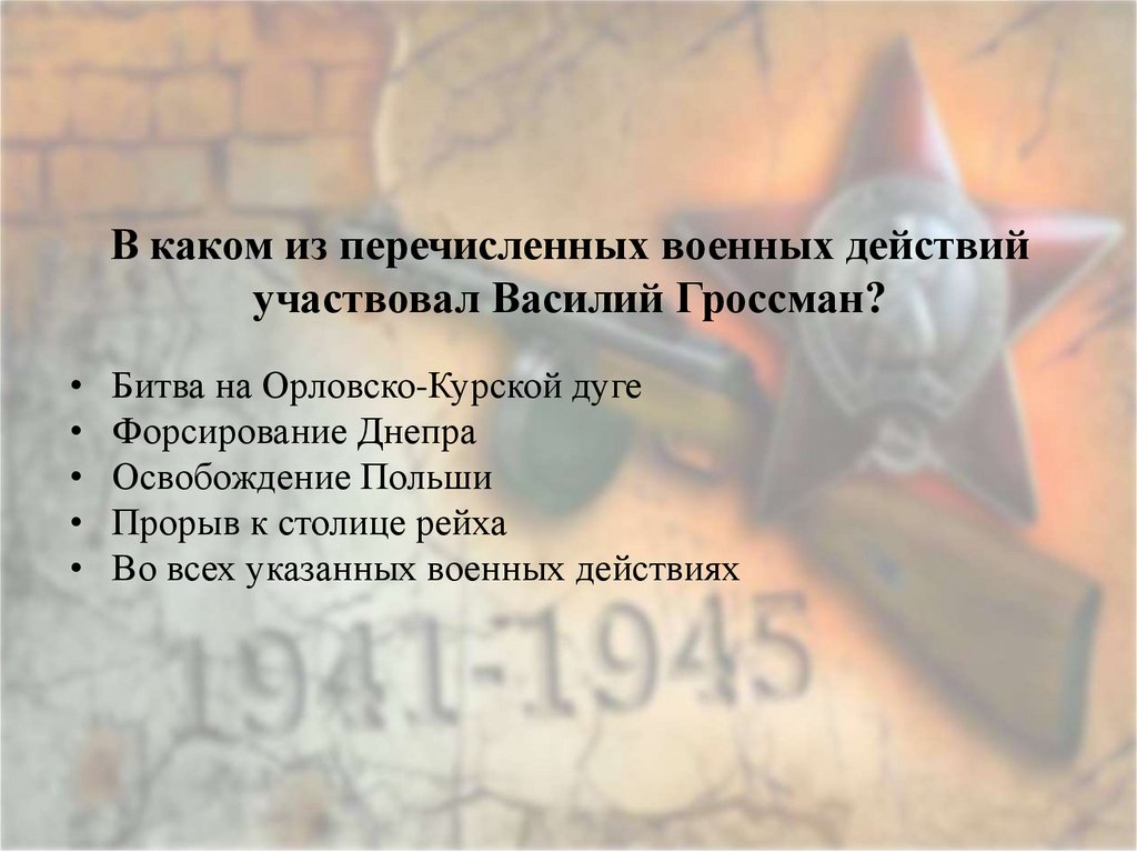 В каком из перечисленных военных действийучаствовал Василий Гроссман?