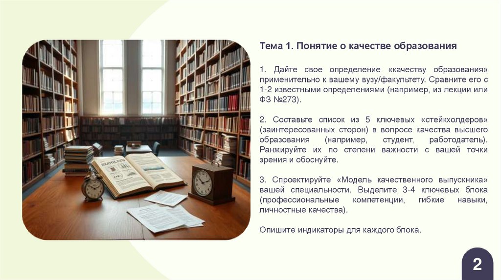Тема 1. Понятие о качестве образования1. Дайте свое определение «качеству образования»