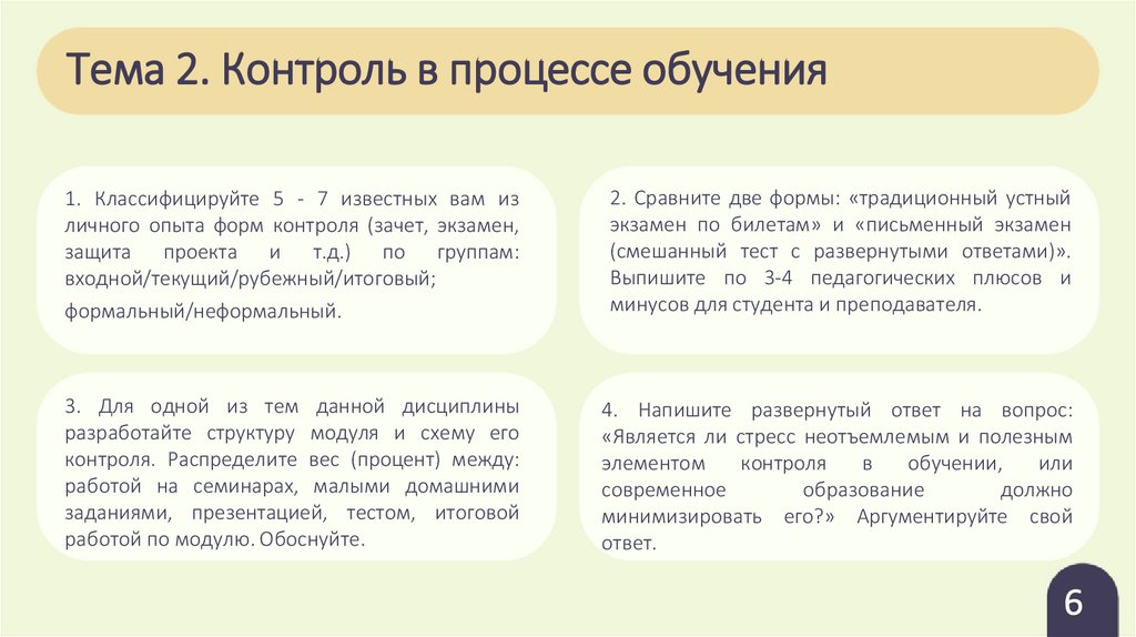 Тема 2. Контроль в процессе обучения1. Классифицируйте 5 - 7 известных вам из