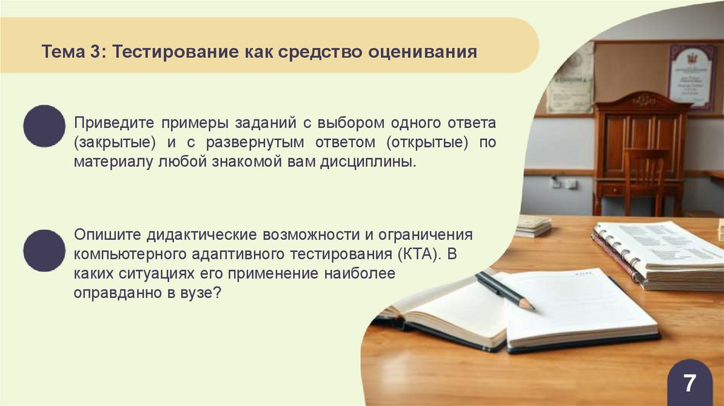 Тема 3: Тестирование как средство оцениванияПриведите примеры заданий с выбором одного ответа