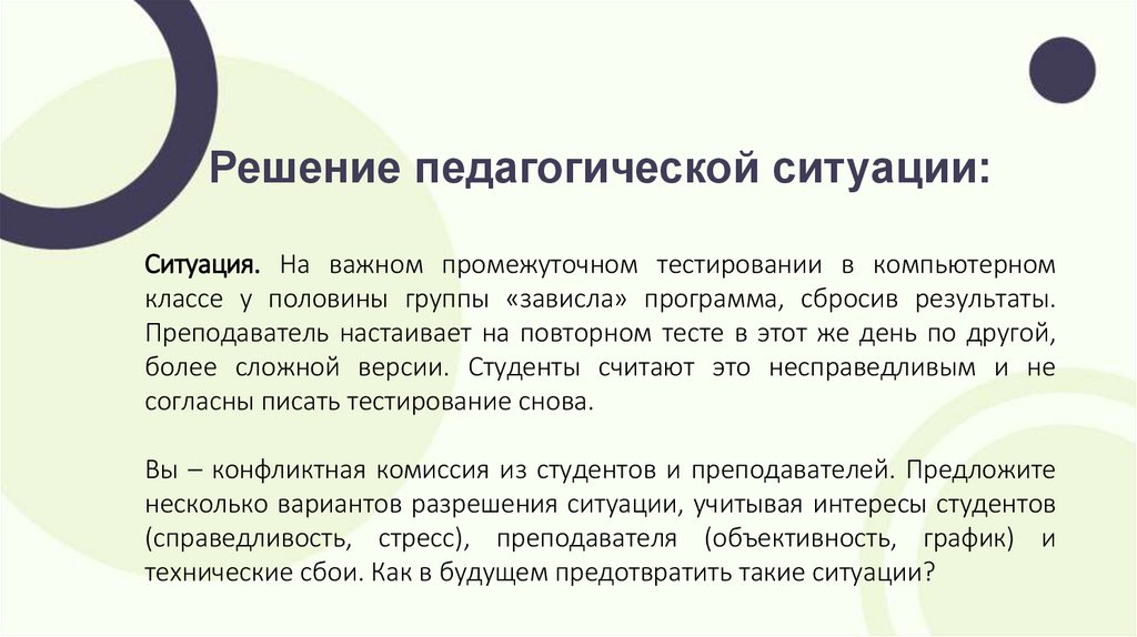 Решение педагогической ситуации:Ситуация. На важном промежуточном тестировании в компьютерном