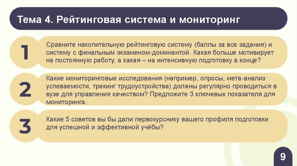 Тема 4. Рейтинговая система и мониторингСравните накопительную рейтинговую систему (баллы за все задания) и
