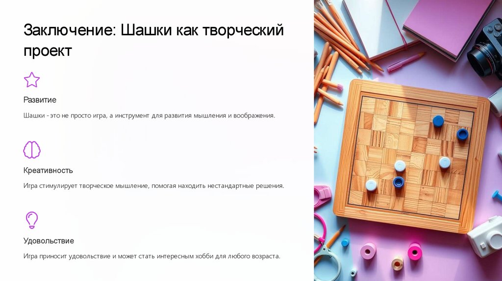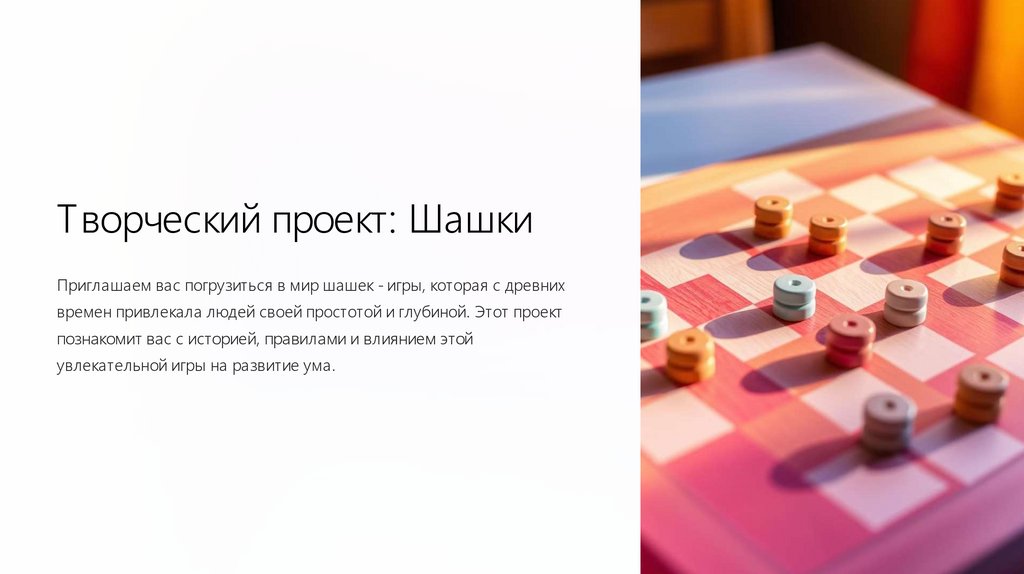 Творческий проект: ШашкиПриглашаем вас погрузиться в мир шашек - игры, которая с древних