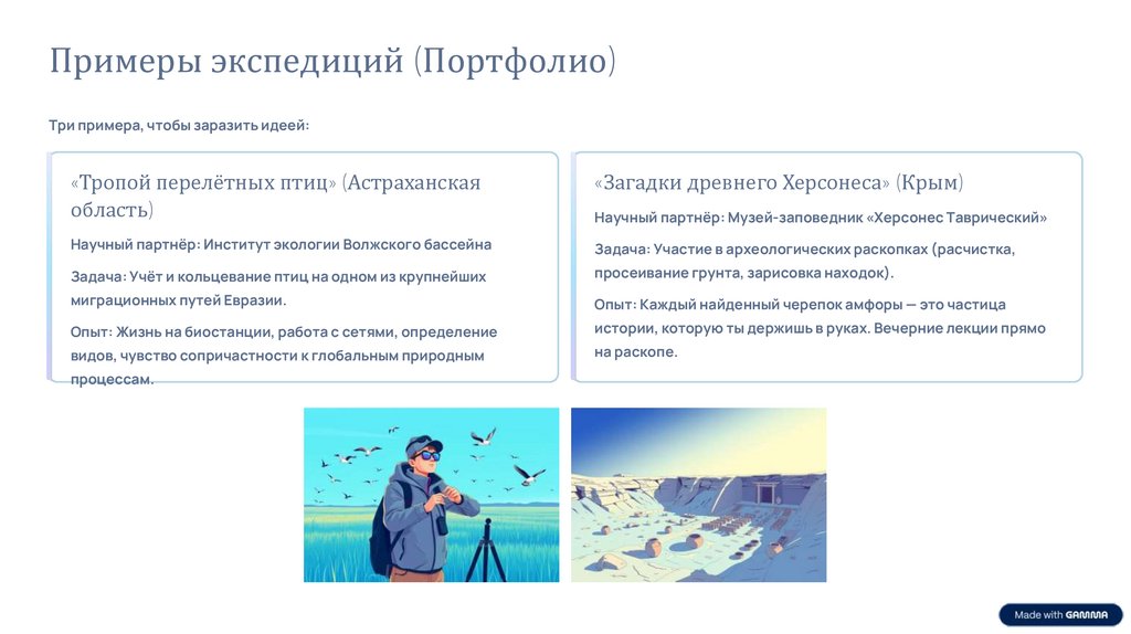 Примеры экспедиций (Портфолио)Три примера, чтобы заразить идеей: