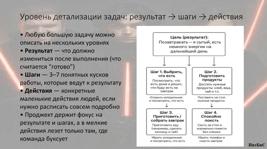 •Сформулировать ожидаемый результат и расписать 3–7 шагов, которые к нему ведут