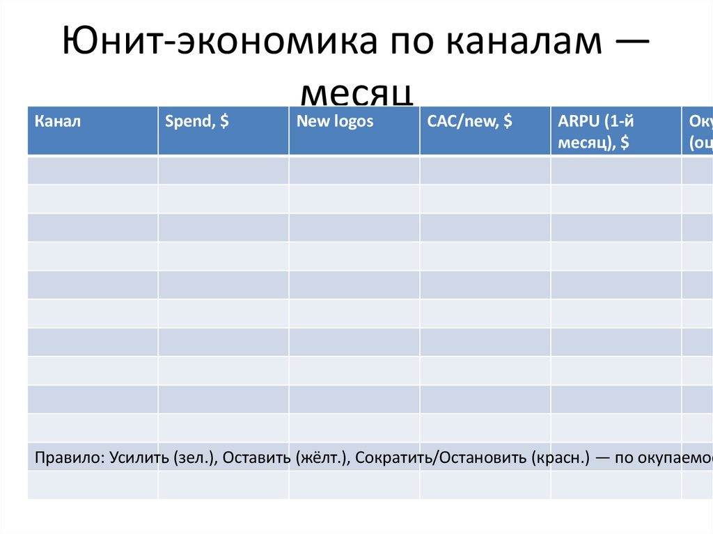 Юнит-экономика по каналам —месяц