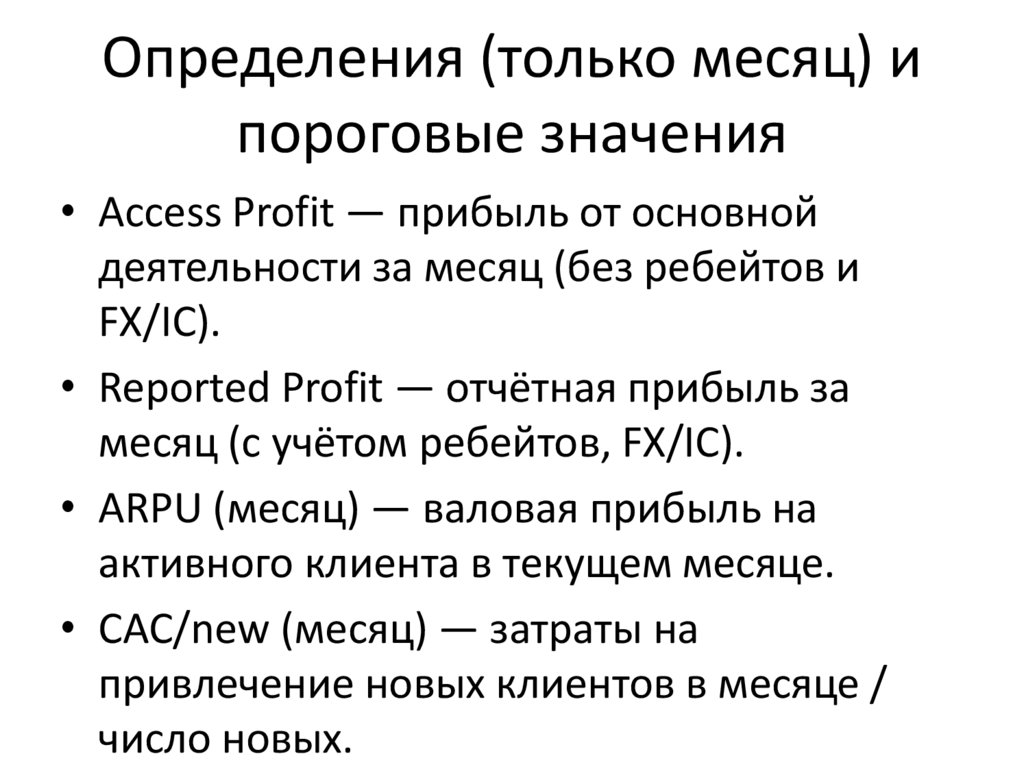 • ARPU (месяц) — валовая прибыль на