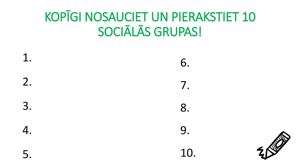 11. KOPĪGI NOSAUCIET UN PIERAKSTIET 10 SOCIĀLĀS GRUPAS!