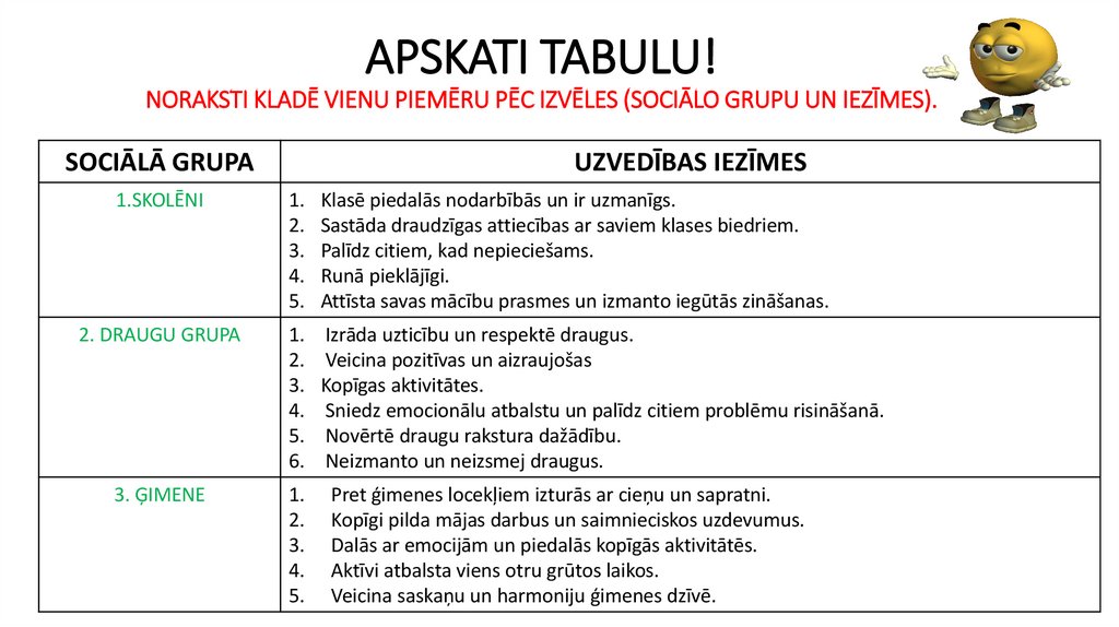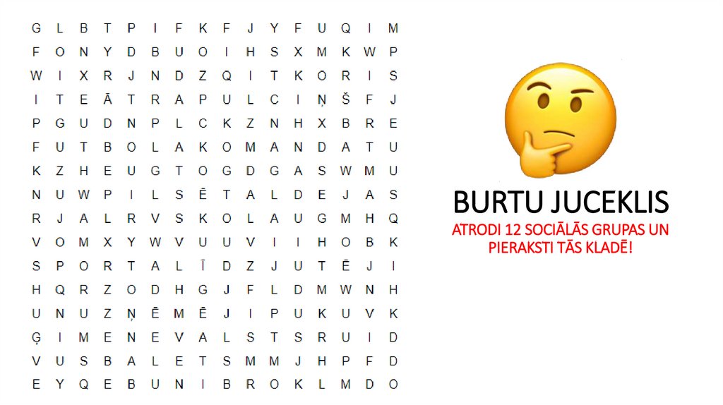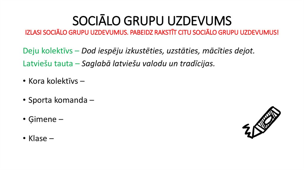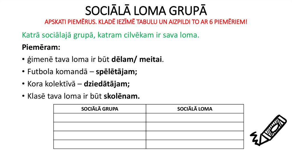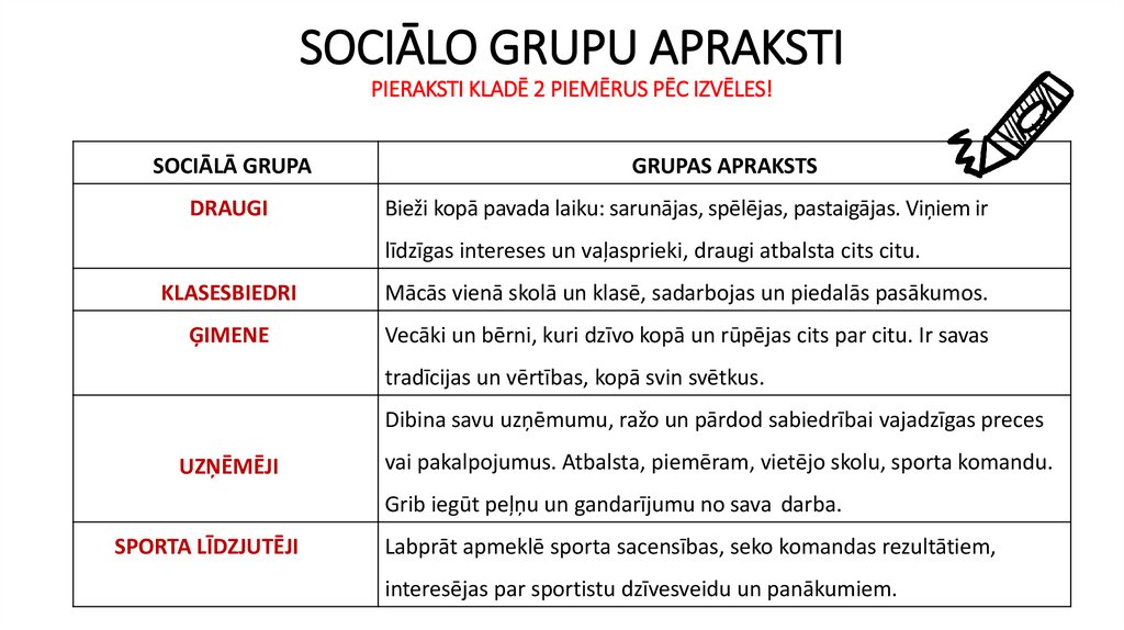 12. SOCIĀLO GRUPU APRAKSTI PIERAKSTI KLADĒ 2 PIEMĒRUS PĒC IZVĒLES!