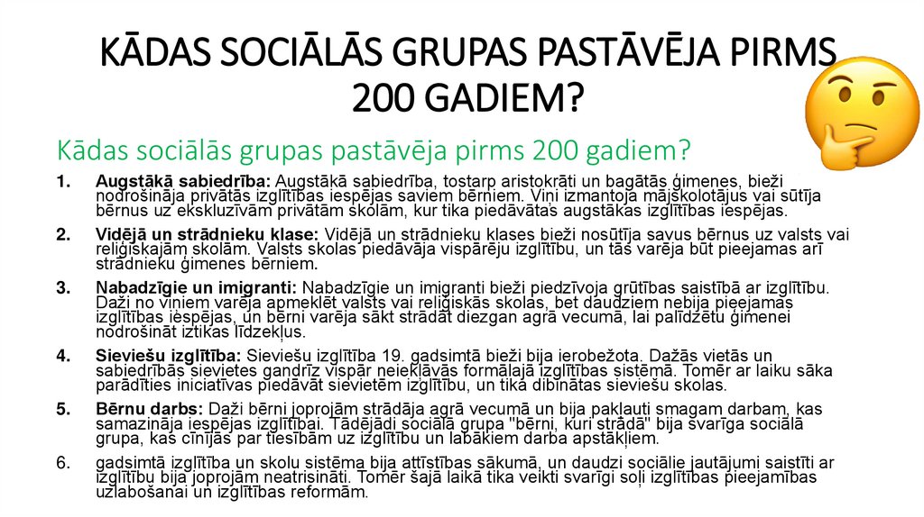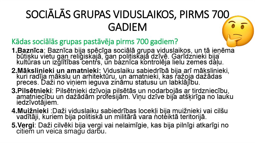 Kādas sociālās grupas pastāvēja pirms 200 gadiem?1.