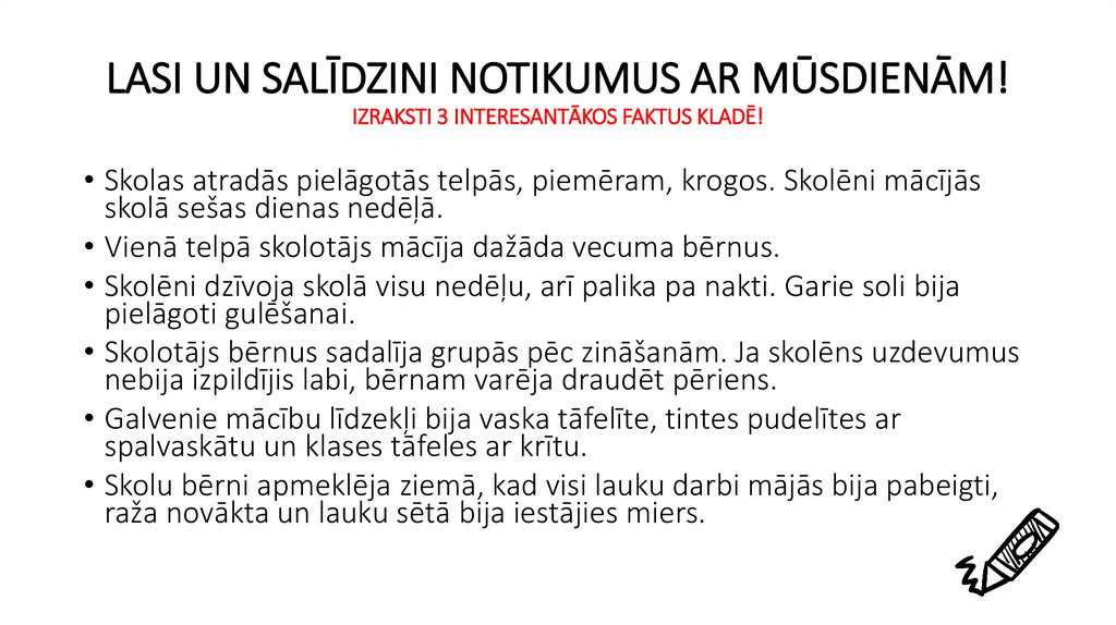 Skolu vēsture Latvijā - https://app.soma.lv/viedtema/socialas-zinibasun-vesture/ceturta-klase/ka-darbojas-socialas-grupas-dazadoslaikos/kada-bija-skolenu-sociala-grupa-agrak121. UZDEVUMS!