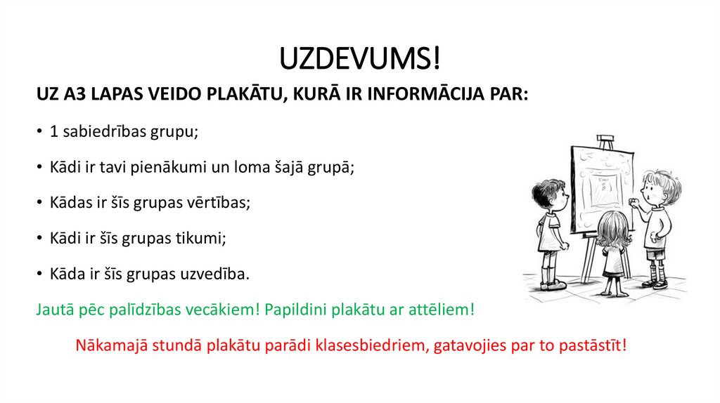 Nākamajā stundā plakātu parādi klasesbiedriem, gatavojies par to pastāstīt!