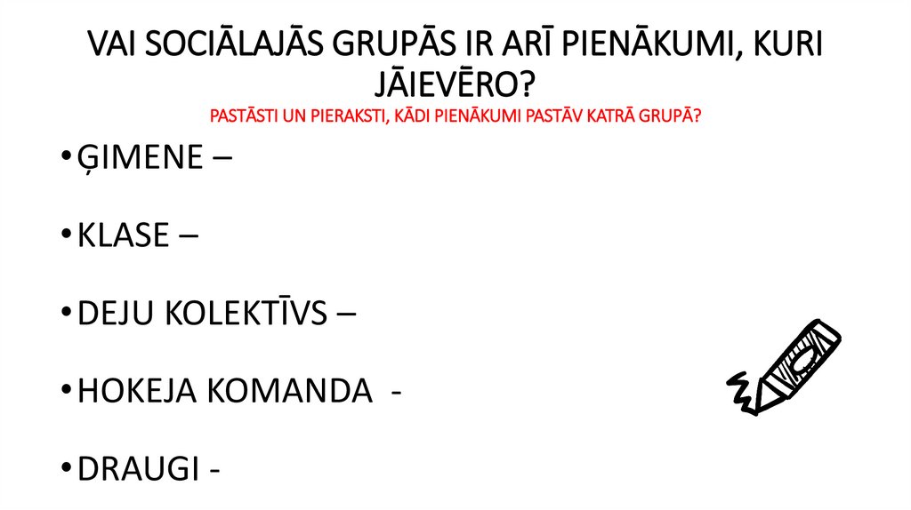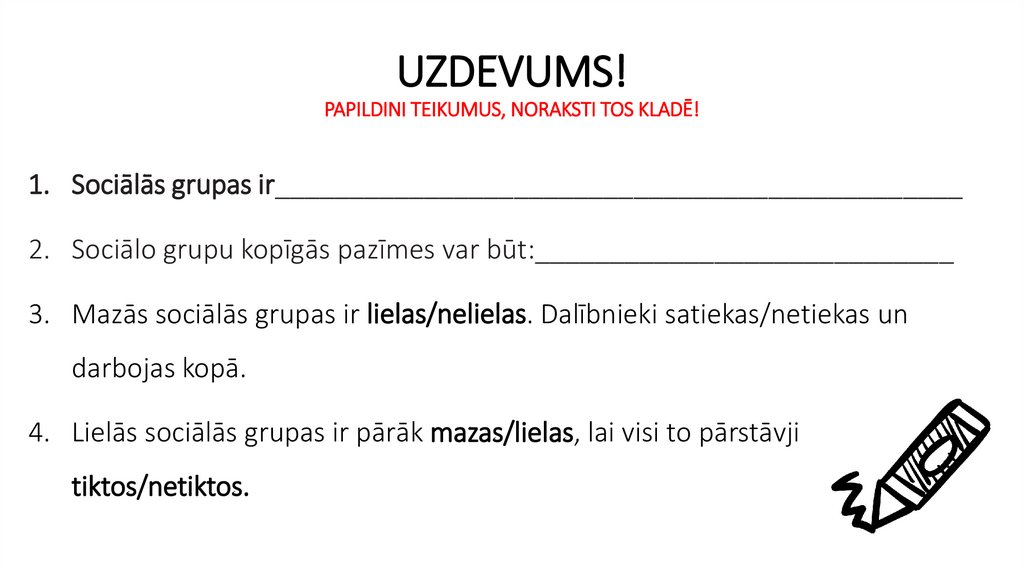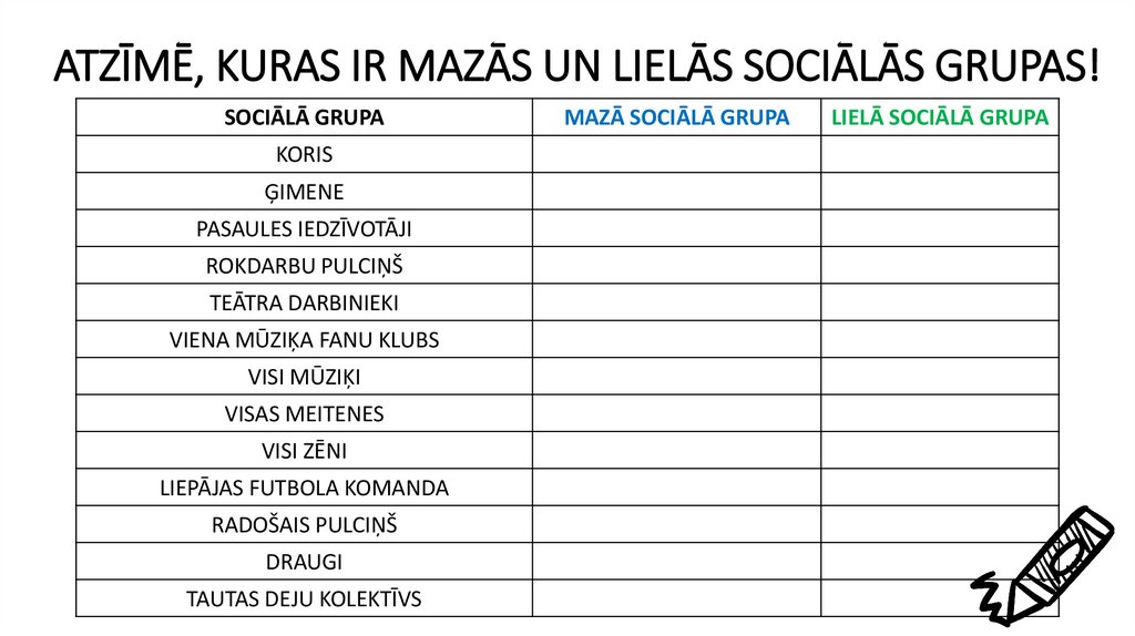 17. ATZĪMĒ, KURAS IR MAZĀS UN LIELĀS SOCIĀLĀS GRUPAS!