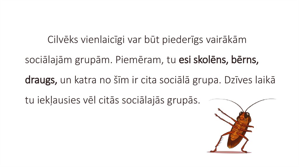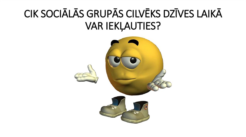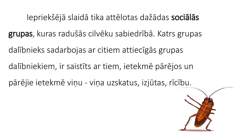 Iepriekšējā slaidā tika attēlotas dažādas sociālāsgrupas, kuras radušās cilvēku sabiedrībā. Katrs grupas