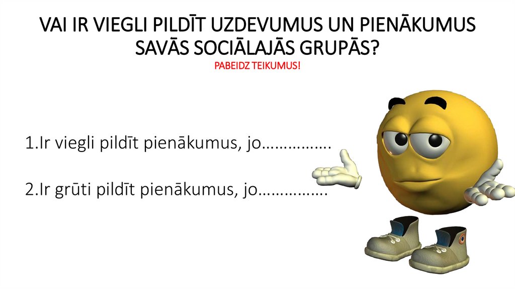 • Kādi ir tavi pienākumi un loma šajā grupā;