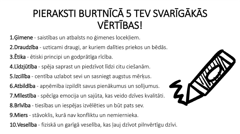 VĒRTĪBAS, KURAS IEGŪSTU ŠAJĀS