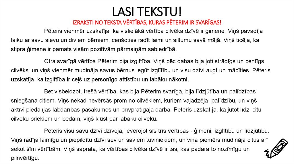mērķus, izvirzītos ideālus, intereses un darbības piemērus, lai secinātu, kādu ietekmi uz