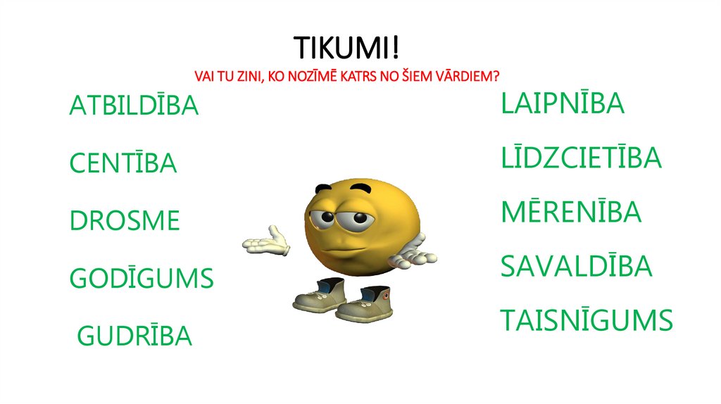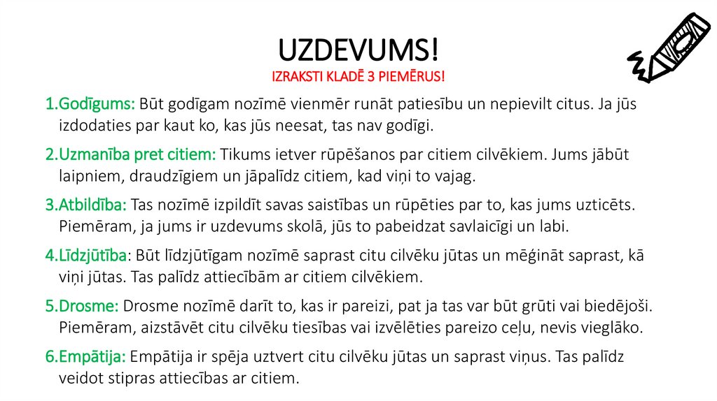 2. S.6.1.2. Paskaidro dažādu vērtību, tikumu, ieradumu un sabiedrībā atzīto uzvedības normu