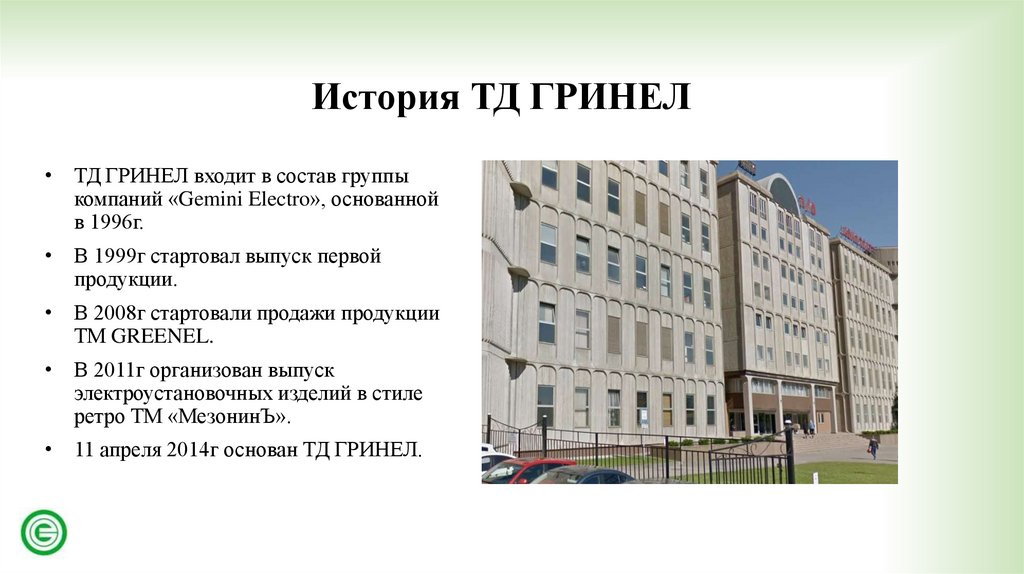 История ТД ГРИНЕЛ• ТД ГРИНЕЛ входит в состав группы