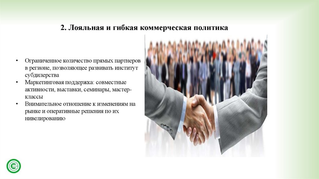 2. Лояльная и гибкая коммерческая политикаОграниченное количество прямых партнеров