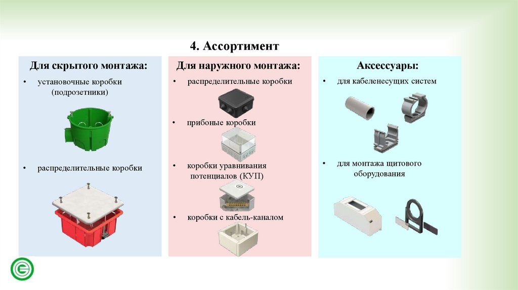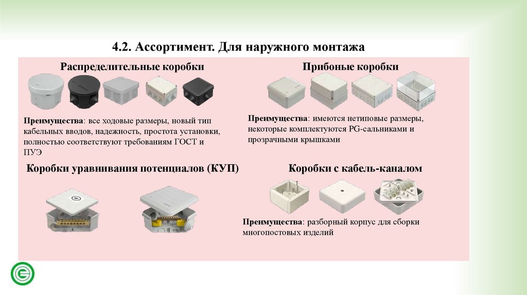 4.2. Ассортимент. Для наружного монтажаРаспределительные коробки