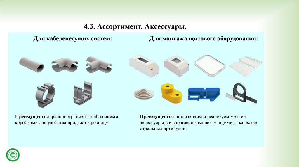 4.3. Ассортимент. Аксессуары.Для кабеленесущих систем: