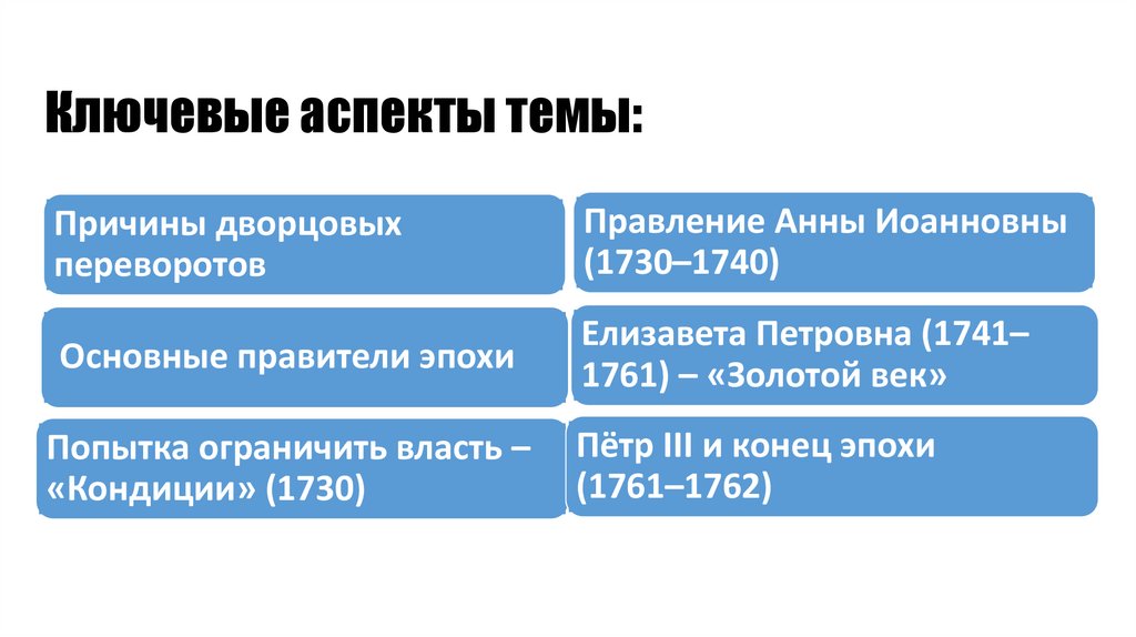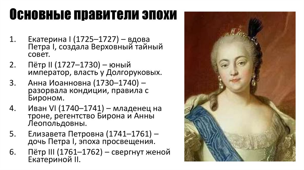 1. Тема: Эпоха дворцовых переворотов (1725—1762)