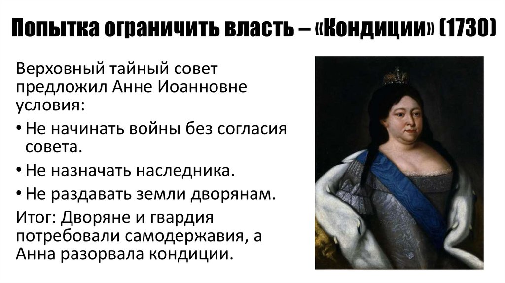 9. Попытка ограничить власть – «Кондиции» (1730)