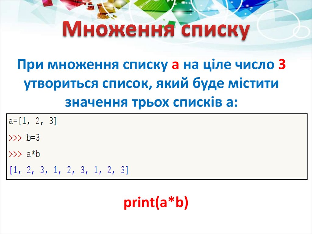 При множення списку а на ціле число 3утвориться список, який буде містити