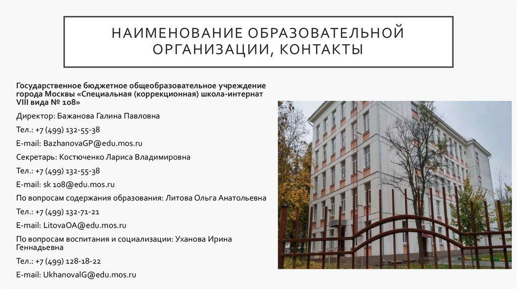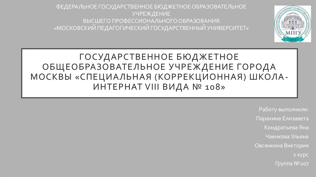 МОСКВЫ «СПЕЦИАЛЬНАЯ (КОРРЕКЦИОННАЯ) ШКОЛА ИНТЕРНАТ VIII ВИДА № 108»