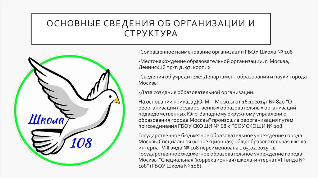 присоединения ГБОУ СКОШИ № 68 к ГБОУ СКОШИ № 108.