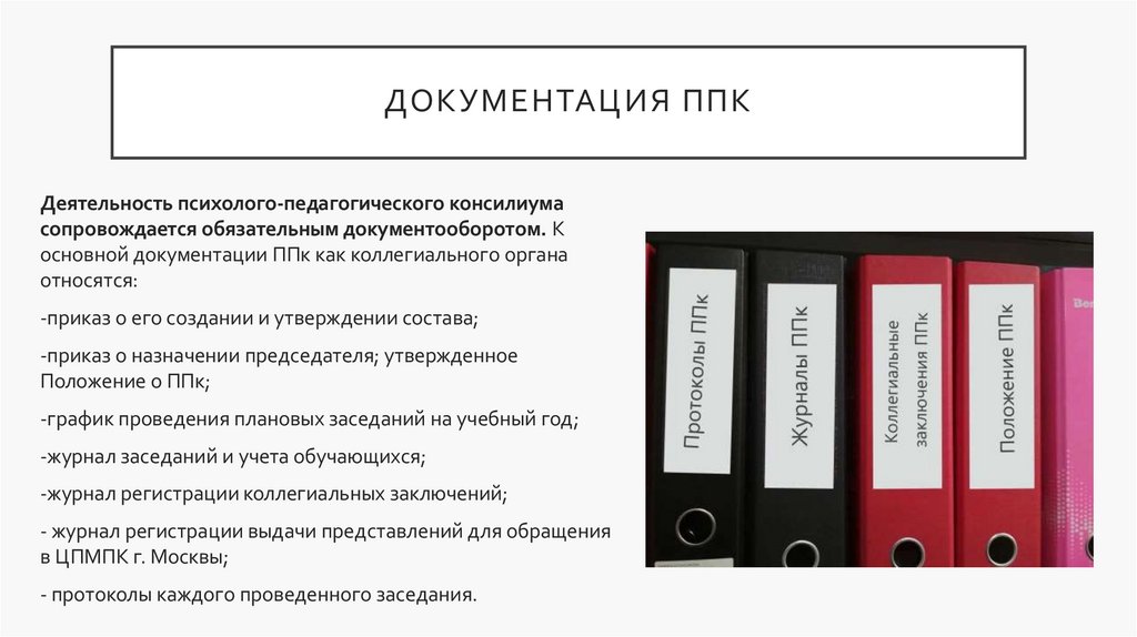 ДОКУМЕНТАЦИЯ ППКДеятельность психолого-педагогического консилиума